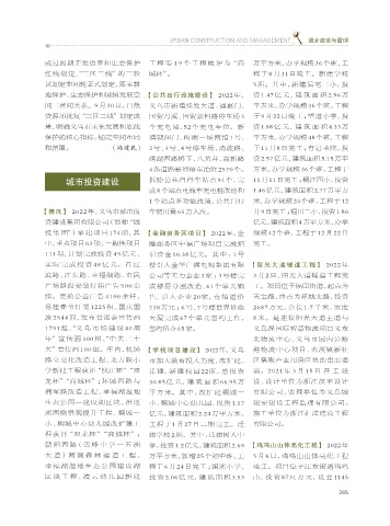 【概况】 2022 年,义乌市城市投 车使用量 65 万人次。 月 9 日完工 ;福田二小,投资 1.86
