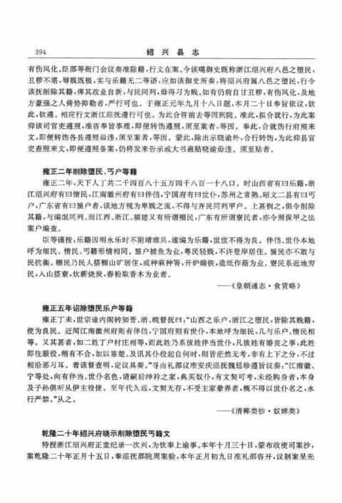 丑秽不堪,辱贱既极,实与乐籍无二等语,应如该御史所奏,将绍兴府属八邑之堕民,行令