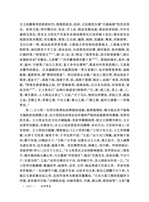 的关系。王士性出生在文化古城临海,其家学渊源深厚,祖父王訚嗜书善文,父王