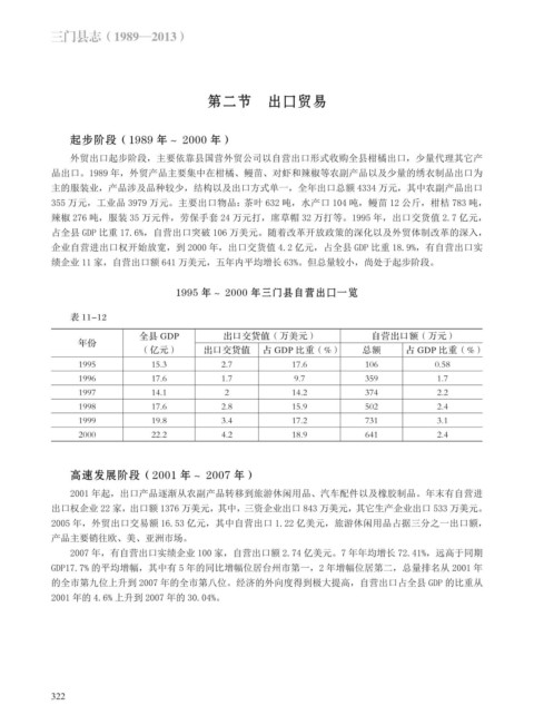品出口。1989 年,外贸产品主要集中在柑橘、鳗苗、对虾和辣椒等农副产品以及少量的绣衣制品出口为