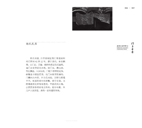 筒瓦屋面,斗拱出挑,门框下部砖砌花饰,