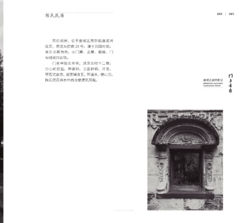 陈氏民居 084 085 陈氏民居,位于鹿城区南郊街道滨河 社区,原庄头前巷 29 号,建于民国时期。 坐东北朝西南,由门屋、正屋、厢楼、门 台组成四合院。 门屋单层五开间,进深五柱十二檩, 分心前后造,带廊轩。立面砖砌,开窗, 带西式装饰。屋面铺青瓦,带滴水,硬山顶。 陈氏民居具有中西合壁建筑风格。 鹿城古建筑影记 WENZHOU LUCHANG GUJIANZHU YINGJI