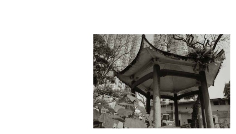 六角攒尖顶式凉亭。平面呈六边形,六角