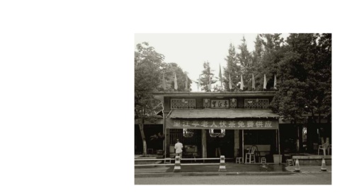 土结构。亭尖顶,圆柱,柱间置靠背座椅,