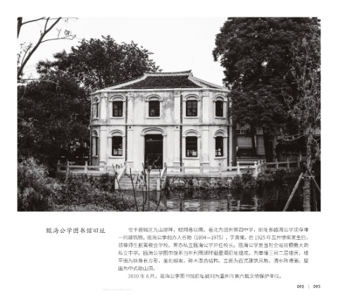 私立中学。瓯海公学图书馆系当年利用湖畔魁星阁旧址建成,为单幢三间二层楼房,楼