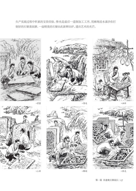 柱,代表了这一时期江南石雕的 生产实践过程中积累的宝贵经验。修光是最后一道细加工工序,用麻绳浸水裹沙在打