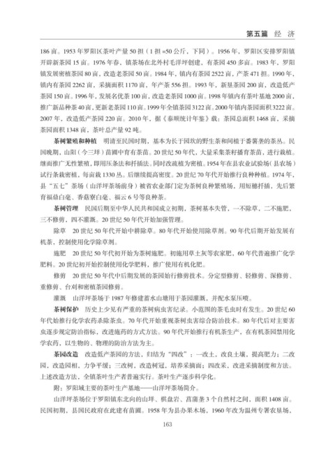186 亩。1953 年罗阳区茶叶产量 50 担(1 担 =50 公斤,下同)。1956 年,罗阳区安排罗阳镇