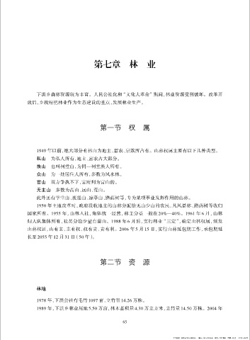 下洪乡森林资源较为丰富。人民公社化和“文化大革命”期间,林业资源受到破坏。改革开