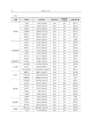 乡镇 行政村 礼堂名称 建设年份 新建/改扩建