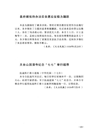 僧众举行超荐抗战阵亡将士及被害同胞道场一日,以资纪念。
