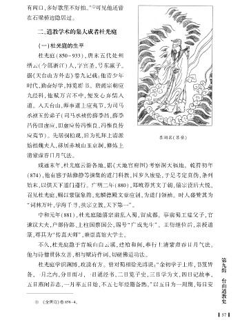 不久,杜光庭隐于青城山白云溪,建飧和阁,奉行上清紫虚吞日月气法。