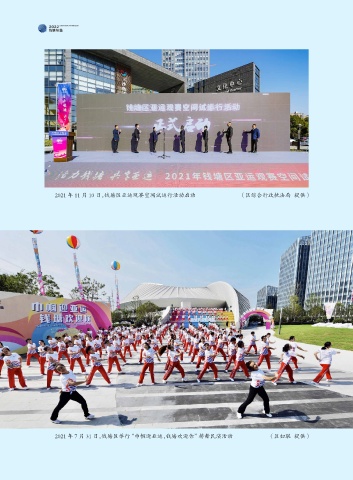 QIANTANG YEARBOOK 2021 年 11 月 10 日,钱塘区亚运观赛空间试运行活动启动 (区综合行政执法局 提供) 2021 年 7 月 31 日,钱塘区举行“巾帼迎亚运,钱塘欢迎你”排舞民演活动 (区妇联 提供)