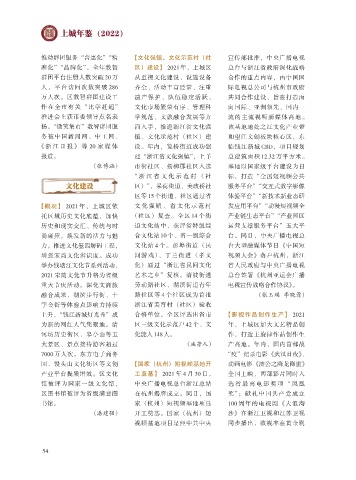 【概况】 2021 年,上城区依 文 化 强 镇 、 省 文 化 示 范 村 发应用平台”“动漫短视频全