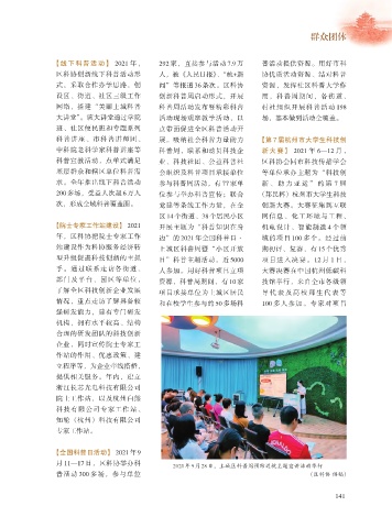 年,区科协把院士专家工作 边”的 2021 年全国科普日· 域的项目 100 多个。经过前