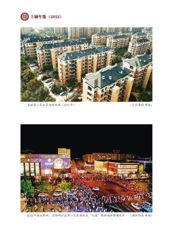 上城年鉴 (2022) 长睦苑小区成片加装电梯 (2021年) (区住建局 供稿) 2021年国庆期间,区晴雨公益中心志愿者组成“人墙”维持湖滨商圈秩序 (湖滨街道 供稿)