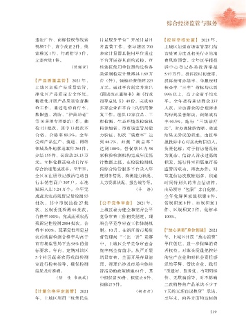 【产品质量监管】 2021 年, 台 (件),强检经费保障 223 投诉按时办结率、举报按时