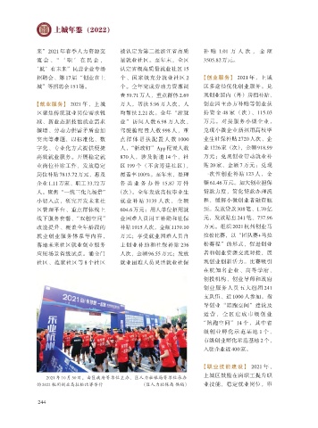 【就业服务】 2021 年,上城 万人,帮扶 5.96 万人次,人 创业园主办方补贴等创业扶