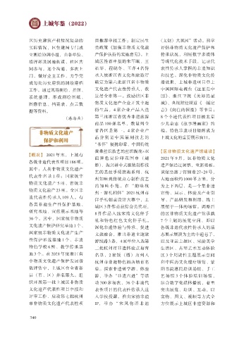国家级非物质文化遗产生产 文旅融合,推出非遗主题旅 态展示展演为主的非遗巷子,