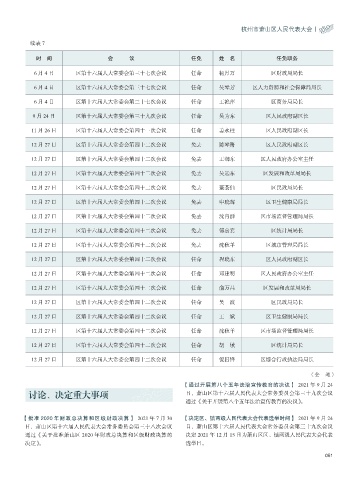 【批准 2020 年财政总决算和区级财政决算】 2021 年 7 月 30 【决定区、镇两级人民代表大会代表选举时间】 2021 年 9 月 24