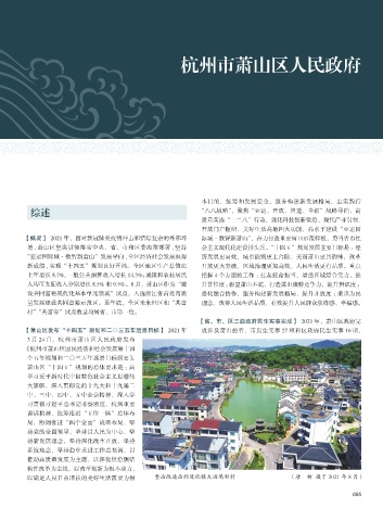 【概况】 2021 年,面对新冠肺炎疫情冲击和错综复杂的外部环 际城·数智新萧山”,奋力打造重要窗口示范样板,勇当省市社