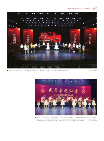 庆祝中国共产党成立 100 周年丨 2021 年 6 月 18 日,“礼赞百年 致敬风华”萧山区“弄潮儿”宣讲团主题宣讲活动举行 (范方斌 摄) 2021 年 6 月 29 日,萧山区举办“百年风华 奔竞萧山”庆祝中国共产党成立 100 周年 主题晚会。图为少先队员向获“光荣在党 50 年”纪念章的老党员献花 (范方斌 摄)