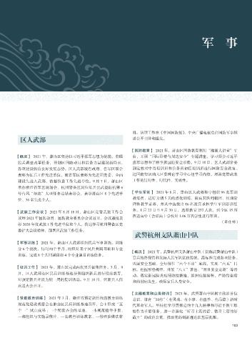 【武装工作会议】 2021 年 8 月 18 日,萧山区党管武装工作会 务。8月23日至9月30日,选派教官253人次,到全区15所