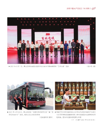 庆祝中国共产党成立 100 周年丨 2021 年 6 月 7 日,萧山区举办基层党组织书记党史学习教育暨首场“艺术党课”活动 (周少伟 摄) 2021 年 4 月 26 日,萧山区启动“沿着红色足迹学党史”暨“百 陶瓷工艺大师叶国珍和女儿叶佳星为庆祝中国共产党成立 年红印家乡行”活动。图为公交公司红色专线 100 周年特制的瓷器系列有 3 件作品被嘉兴南湖革命纪念 (区委宣传部 提供) 馆收藏。图为叶佳星在展馆精心布展 (丁 力 摄于 2021 年 6 月 18 日)