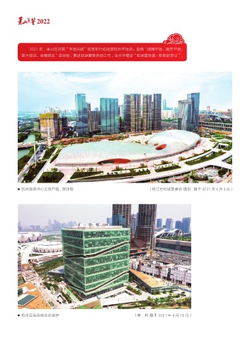 2022 2021 年,萧山区开展“亚运兴城”攻坚年行动迎接杭州亚运会。围绕“保障亚运、服务亚运、 放大效应、全面效应”总目标,推进亚运筹备各项工作,高水平建设“亚运国际城·数智新萧山”。 杭州奥体中心主体育馆、游泳馆 (钱江世纪城管委会 提供,摄于 2021 年 6 月 4 日) 杭州亚运会综合训练馆 (唐 柯 摄于 2021 年 4 月 16 日)