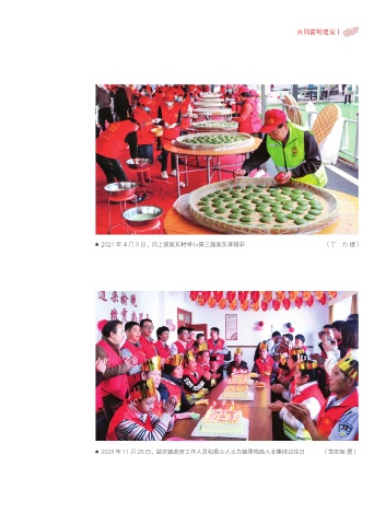 共同富裕建设丨 2021 年 4 月 3 日,河上镇紫东村举行第三届紫东麻糍节 (丁 力 摄) 2021 年 11 月 25 日,益农镇政府工作人员和爱心人士为镇里残障人士集体过生日 (童志辉 摄)