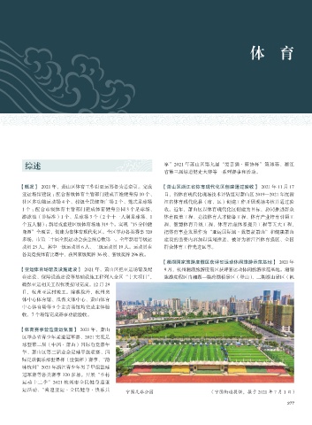 【概况】 2021 年,萧山区体育工作以亚运筹备为总牵引。完成 【萧山区浙江省体育现代化区创建通过验收】 2021 年 11 月 17