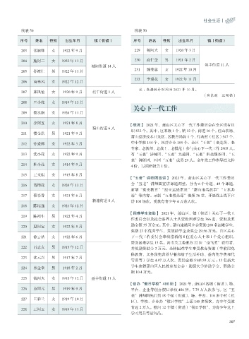 213 沈小花 女 1922 年 9 月 有“五老”讲师团、“五老”关爱团、“五老”科技服务团、“五