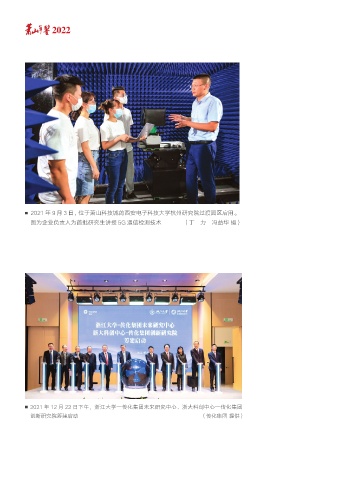 2022 2021 年 9 月 3 日,位于萧山科技城的西安电子科技大学杭州研究院过渡园区启用。 图为企业负责人为首批研究生讲授 5G 通信检测技术 (丁 力 冯益华 摄) 2021 年 12 月 22 日下午,浙江大学—传化集团未来研究中心、浙大科创中心—传化集团 创新研究院筹建启动 (传化集团 提供)