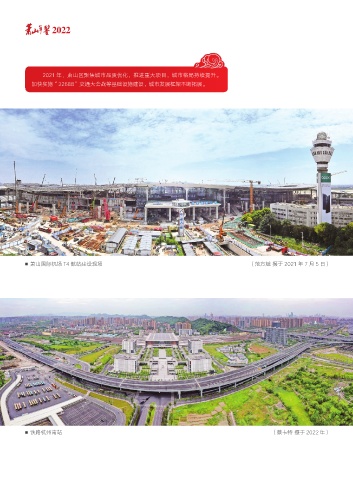 2022 2021 年,萧山区聚焦城市品质优化,推进重大项目,城市格局持续提升。 加快实施“22688”交通大会战等基础设施建设,城市发展框架不断拓展。 萧山国际机场 T4 航站建设现场 (范方斌 摄于 2021 年 7 月 5 日) 铁路杭州南站 (蔡卡特 摄于 2022 年)