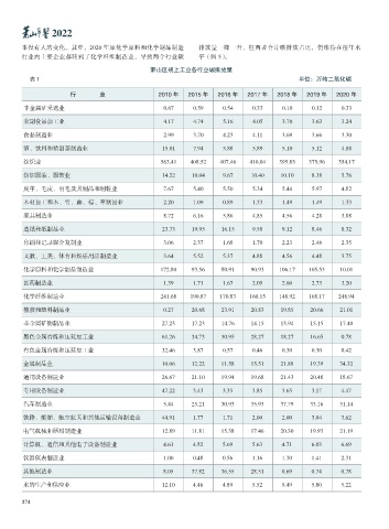 行 业 2010 年 2015 年 2016 年 2017 年 2018 年 2019 年 2020 年