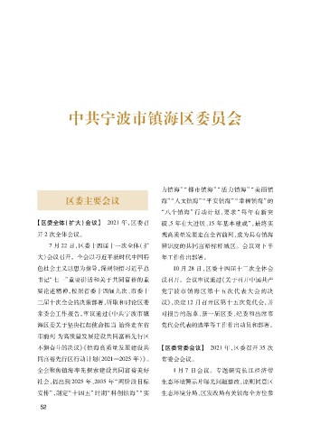 不懈奋斗的决议》《镇海高质量发展建设共 【区委常委会议】 2021 年,区委召开 35 次
