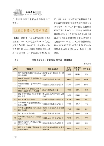 表 9 2021 年度工业投资额 3000 万元以上项目情况
