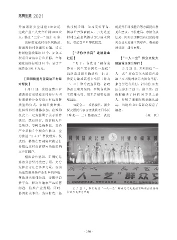 问 题, 助 推 产 业 发 展。 同 时, 10 月 21 日,阳明街道“一人一艺”群众文化大展演首场演出在西街