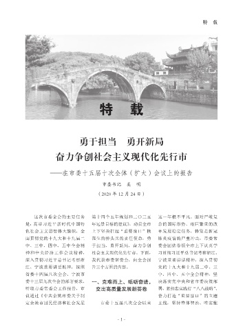 深入贯彻习近平总书记考察浙 我代表市委常委会,向全会报 宁波重要讲话精神,深入贯彻
