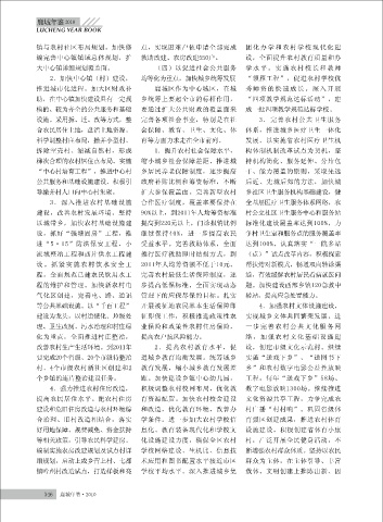 建设为龙头,以村道硬化、垃圾处 征即保工作,积极推进政策性农 实现城乡文体共同繁荣发展。进 合资源,抓项目载体实施,实现公 押贷款工作,探索开展土地承包经 强和改善党对农村工作的领导和