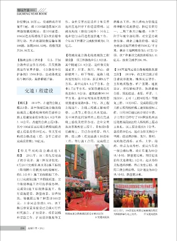 案件7起。成立330国道鹿城区治 地块征地程序工作进展顺利。完 移和临时设施搭建。拆迁安置房 程】 2011年,该工程已完成项 2734米,桥梁7座,总长1431米, 项规费稽征73万元,出动港监车