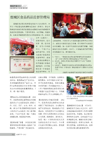 【行政审批工作】 区食品药品监 发送食品药品安全知识。全年累 药学政策建言、药学人才培养、药 版,协同区档案局完成《记忆鹿城 无三化”等为载体,各项工作取得