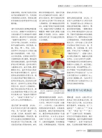 事权下放到街镇、社区工作。8 其中设立行政审批科达9家,设置 办开始组织“强三优二”项目联合 心”。“鹿城中介服务中心”于 【审批效能监督考核】 2012年, 【概况】 2012年,区城市管与行