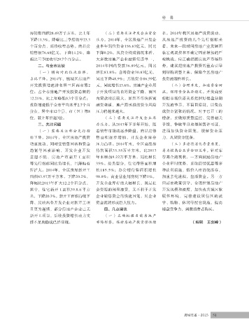 标下降。2014年,全区房地产投资 售面积逐步增加,开发企业库存 力,巩固资金链条。