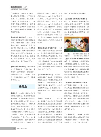 家,市级人身险公司23家,比2013 起,市保险行业协会在位于鹿城路 合作。2014年,一大队、二大队交