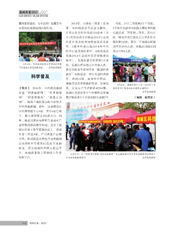 【概况】 2014年,区科技局编制 规、安全生产等讲解活动266期。 国科普日广场活动在白鹿洲公园举行