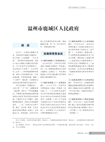 2015年,区政府贯彻落实市 区政府常务会议 稿)》,会议研究了鹿城区第三