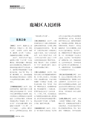 【概况】 2015年,鹿城区总工会 国梦宣传教育活动,引导职工积极 资料20000份。开展元旦、春节送