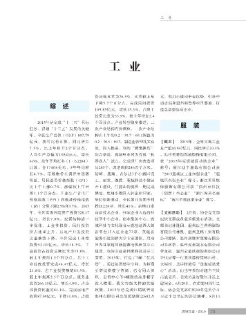 2015年是完成“十二五”目标 个百分点。产业转型稳步推进,三 服 装