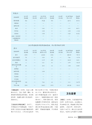 【健康监测】 2015年,从业人员体 料共48种1075份,监测合格率