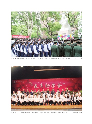 2015年4月3日,鹿城区开展“我们的节日——清明”暨“纪念先烈•报效祖国•圆梦中华”主题活动 吴 莹 摄 2015年12月9日,鹿城区慈善总会“秦亮助学金”感恩十周年纪念大会在温州大学城市学院召开 区慈善总会 提供
